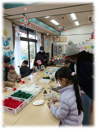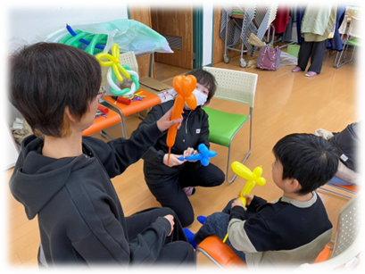 子供も大人もクリスマス工作、バルーンアートを作りました。