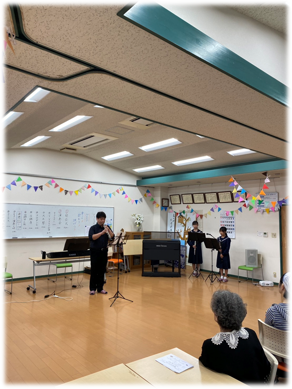 最後に日新西中学校生徒のオーボエとフルートによる“星に願いを”の演奏。そして先生のオーボエ”川の流れのように”。