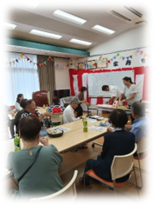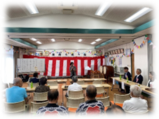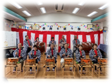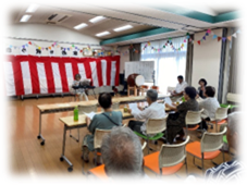 市長・県議・市議の皆さんからお祝いの言葉を頂きました。記念撮影後、野方お囃子保存会の皆様に太鼓や笛のお囃子で会を盛り上げていただきました。