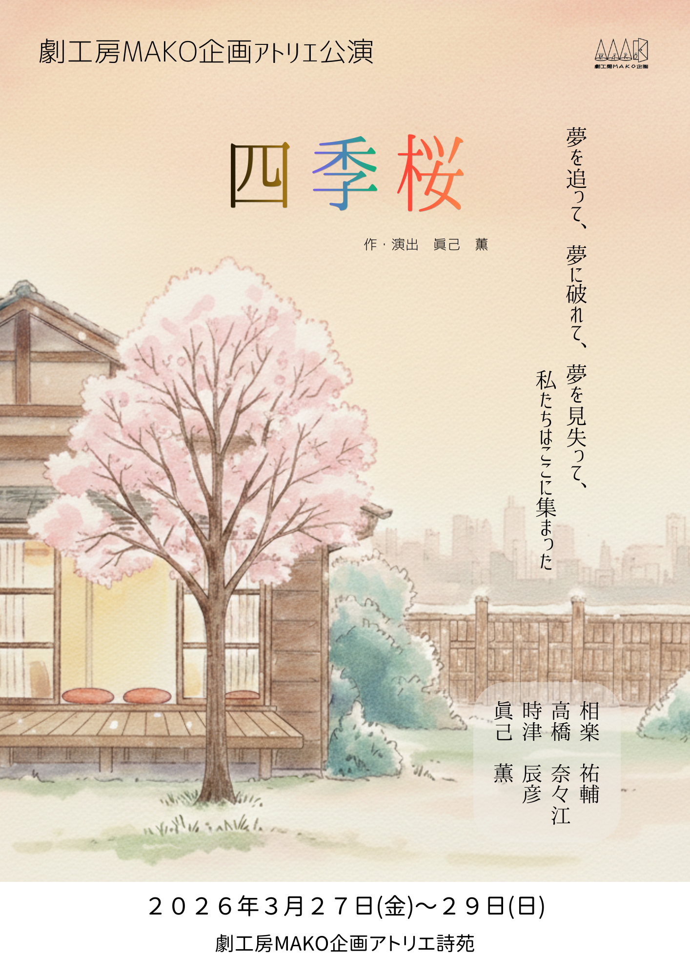 1999年、MAKO企画発足と同時に生まれた「青いうさぎ」と、2003年初演の「カフェ・メモワール」は場所を変えキャストを変え、何度も公演してきたMAKO企画そのものと言える作品。 今回はリスタートにあたり、「カフェ・メモワール」の脚本に手を加え、演出を変えて、女・髙橋奈々江、婦人・眞己薫、ウエイター役を日替わりキャストでお届けします。どこか懐かしい、心の奥底に眠っていた記憶をたどるような時間。生きることや愛にまっすぐに向き合う自分に出会える空間に是非遊びに来てください。