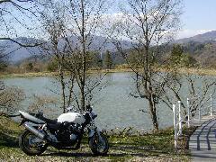 キャンプの下見を兼ねて茶臼山ツーリングに出かけた。 9:10出発。少し走ったが,思ったより風が強く,寒かった。一度家に戻り中にジャンパーを一枚着込んで再出発した。昨日までの暖かい気候が今日は一変していた。 豊田市から足助町をとおって稲府町の道の駅で一休み。かなり体が冷えてきていた。スピードを出すとぐんと寒くなる。60kmで走るのと80qで走るのとではまったく寒さが違う。途中足助の香嵐渓では百を超えるこいのぼりが川の上を泳いでいた。 稲武の道の駅ではツーリングの団体がいくつかとまっていた。「やっと体があったまった。」と皮つなぎを着たかっこいい女性の声が聞こえてきた。やっぱりみんな寒いんだ。風邪が治りきっていないので,ぶり返すとやだなと思いながら,セーターを中に1枚着込んで再出発した。 さっきよりは暖かくなった。長野県羽根村の方向にR153を走る。R153から別れて茶臼山に向かう入り口がわかりにくい。間違っているかもしれないと心配しながら走った。「小戸名渓谷」という、以前逆から走ったときに一休みしたところに来てはじめてほっとした。 しかし,またまた寒くなってきた。たまらず,道端にとめて,常備している合羽上下を着込んだ。これが意外に暖かい。合羽は防水だけでなく,防寒にも威力を発揮するんだ。これ以後,全くといっていいほど寒さを感じなかった。 茶臼山山頂手前で,中央アルプス(?)を遠景に撮影。寒いが天気がよく空気が澄んでいる。空の青さがすばらしい。 茶臼山湖,萩太郎山を右手に見ながら走る。途中駐車場の案内板で「野外活動ロッジ」の場所を確認した。 CBを止めて,下見の開始。まずは茶臼山山頂登山からすることにした。ロッジわきの登山道から登山開始。案内板に山頂まで20分とあったので「楽勝」と見くびって出発した。しかし,10分もすると足が思うように進まなくなった。思ったより急な坂道で,距離は短いが,そう楽なコースではないようだ。私の体調が万全ではないということもあるかもしれないが。途中でついにケツを割って,一休み。ついでに芭蕉みたいな葉っぱを写真に取る。 「雷岩」に乗って,遠景を何枚か写真に撮った。山頂手前に見晴らし台が設置してあり,そこでほぼ360度のパノラマ遠景を満喫できた。そこから山頂まで約20メートル。そこにも展望台があった。そこからは萩太郎山がよく見えた。 山頂から自由広場のほうに下山する。急な岩場は下りのほうが歩きにくい。案内板にしたがってロッジのほうに下った。牛見グランドに出た。 キャンプ場,キャンプ施設を見学し写真を撮影した。そのあと奥にあるテントサイトを見回り,そこでも何枚か撮影した。 昼食をとるためにロッジの食堂に入る。「一般のお客様もどうぞ。」とあった。しかし,利用者はわたし一人だった。採算を考えなくてもよい,お役所商売なんだな。ビールとかつ丼を頼んで少しゆっくりした。甘ったるいカツだった。こんなところで味付けに注文をしてはいけないが,真ん中にしいたけの揚げ物がのっているのにはびっくりした。 食べながら昨年のキャンプの時程表を読んで確認した。「ウグイス広場」が確認してないことに気づき,食後に行って写真をとった。 「小鳥の森」入り口方面から岐路につく。「小鳥の森」散策は90分かかる。さすがに実施する元気はなかった。入り口を確認しただけで下見終了。最後に茶臼山湖に再び寄り,写真を撮って岐路につく。 稲武道の駅で休んだあと,「黒田湖」に寄り道した。大きくはないが,山奥の静かな,水と空気が澄んだ気持ちのよい湖だった。その後,来た道を引き返せばよかったが,先へ進めば豊田方面に出るのではないかと,勘で進んだ。それが間違い,山道は油断ならない。右は左へとワインディングしているうちにどの方向に進んでいるのかわからなくなってしまう。(自分ではあっちに進んでいると思い込んでいるが。)設楽町に入り,急な山道を下って,出たところが稲府町?……また,稲府町? ぐるっと回って戻ってきてしまったのである。北上し(まだここでは自分は南下していると思っていた。)R153に出た。再び稲武道の駅を通過して足助に向かった。途中また寒くなり,今まで脱いでいた合羽を着込んだ。やっぱり合羽の威力はすごい。暖かい。 足助町から行きとはルートを少し変えて蔵が池公園周りで豊田市に入った。蔵が池公園はまだ改装工事中だった。その後はひたすらバックホーム。刈谷愛教大付近の喫茶店で一休みしたあと,家に帰った。19:〇〇少し前だった。