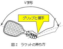 又、人指し指の第二関節を”L字"状に曲げたところで、グリップを授けてラケットを支える。
