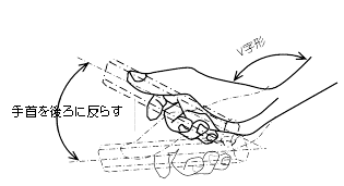 握り方 親指と人差し指の付け根の位置 図6,7参照 |