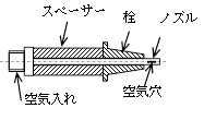 2.ノズル(φ2.5)にスペーサーを差し込む