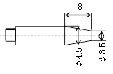 ノズルの先端外径は3.5mm程。テーパーは8mm長さで1mm。右図参照。
